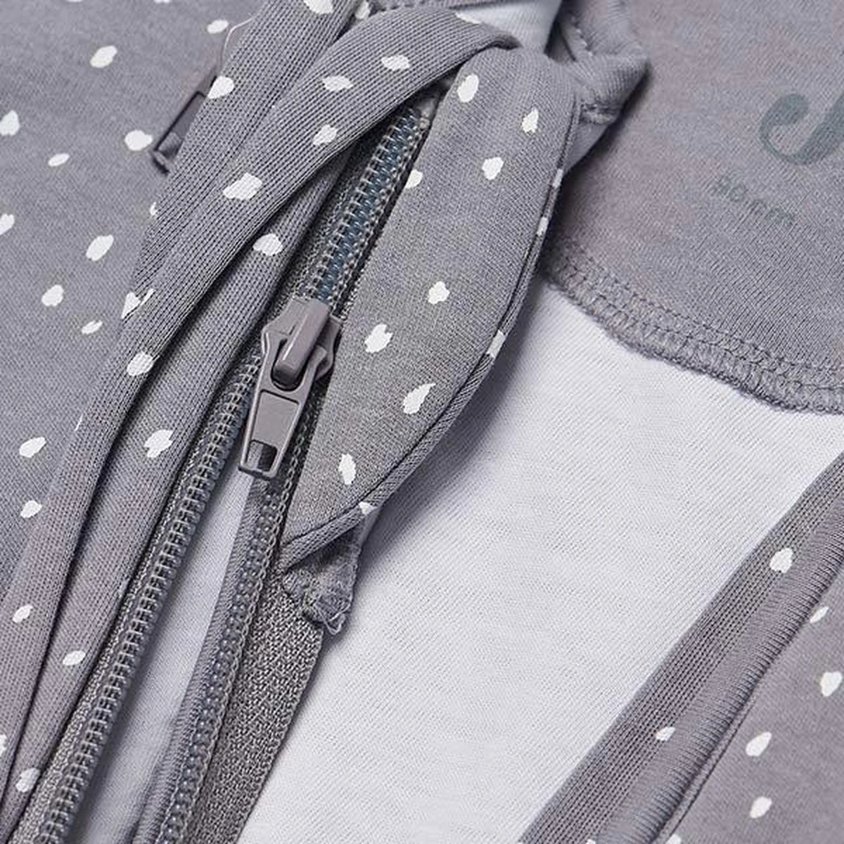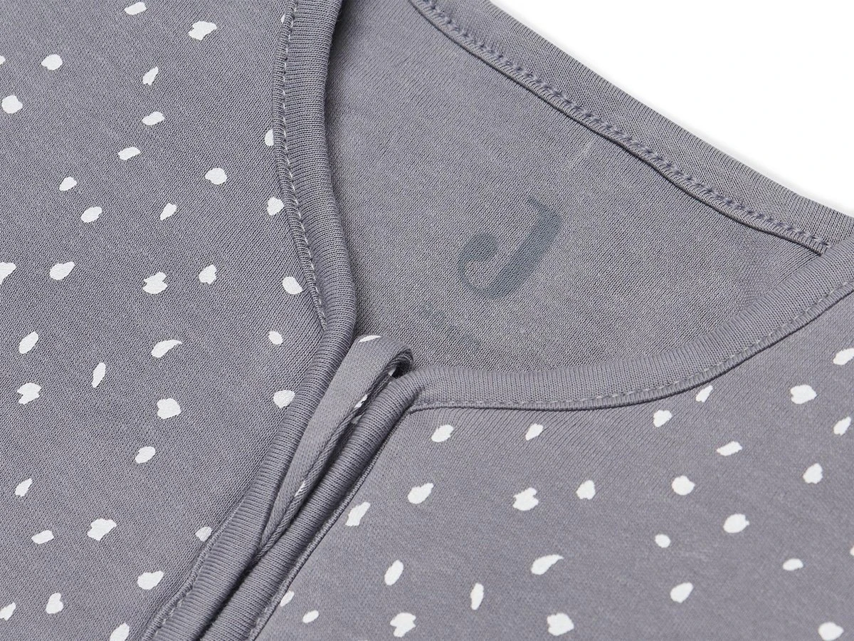 Deze slaapzak heeft een rustige stippenprintje in twee kleuren. Ga je voor de Nougat of voor de grijze variant?