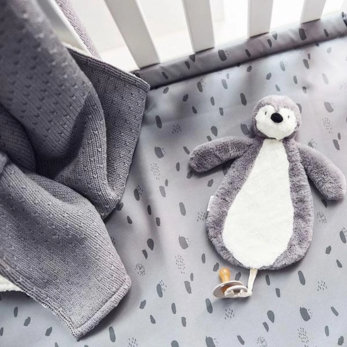 Juist door die teddybeertjes voering ook super handig als wikkeldeken, op de bank of voor onderweg. Dit heerlijke breisel kun je in het ledikant goed combineren met een lakentje.