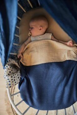 De deken is 100×150 cm en past daarmee perfect in het ledikant. Ook verkrijgbaar als deken voor de kinderwagen of wieg in het formaat 75×100.