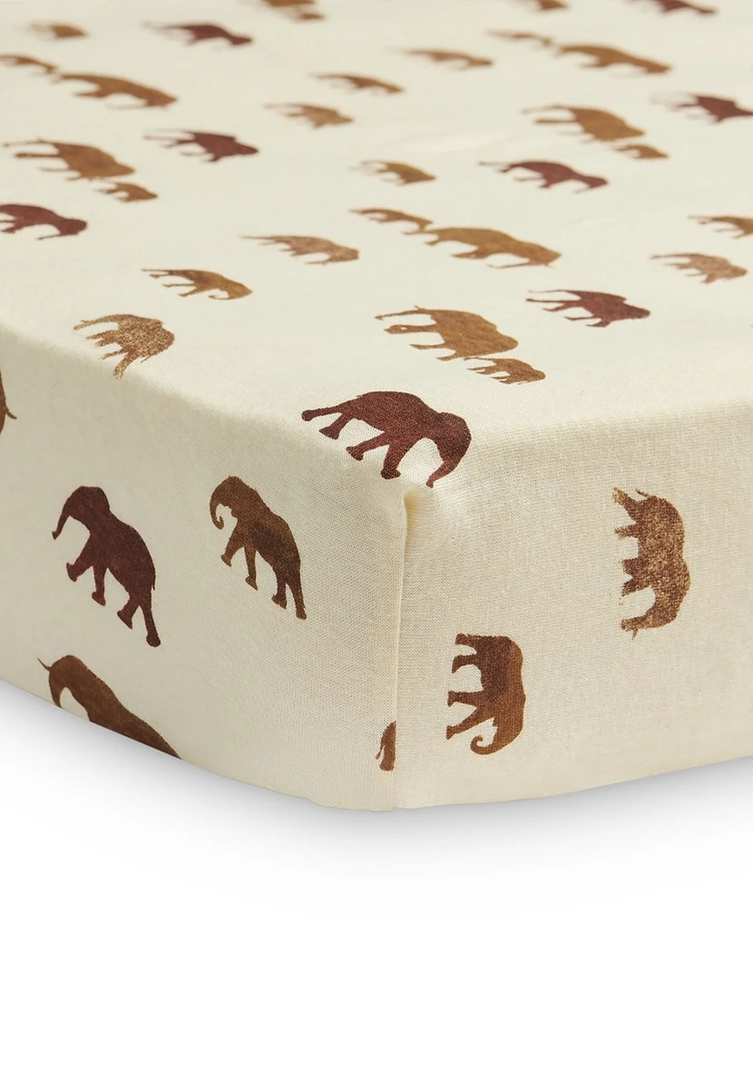 Maak het bedje van jouw baby nóg leuker op met dit trendy hoeslaken in de mooie Savannah olifantjes print. Dit hoeslaken past perfect bij een deken als de spring knit Ivory en Chestnut of het bliss knit thema in de kleuren caramel en nougat.. Zo kun jij oneindig combineren met het beddengoed van Jollein.