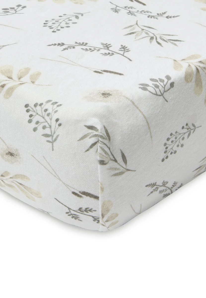 Lekker naar bed en slapen op jouw vrolijke hoeslakentje! Dit hoeslakentje met droogbloemen print is perfect om een romantische sfeer te creëeren in de babykamer.