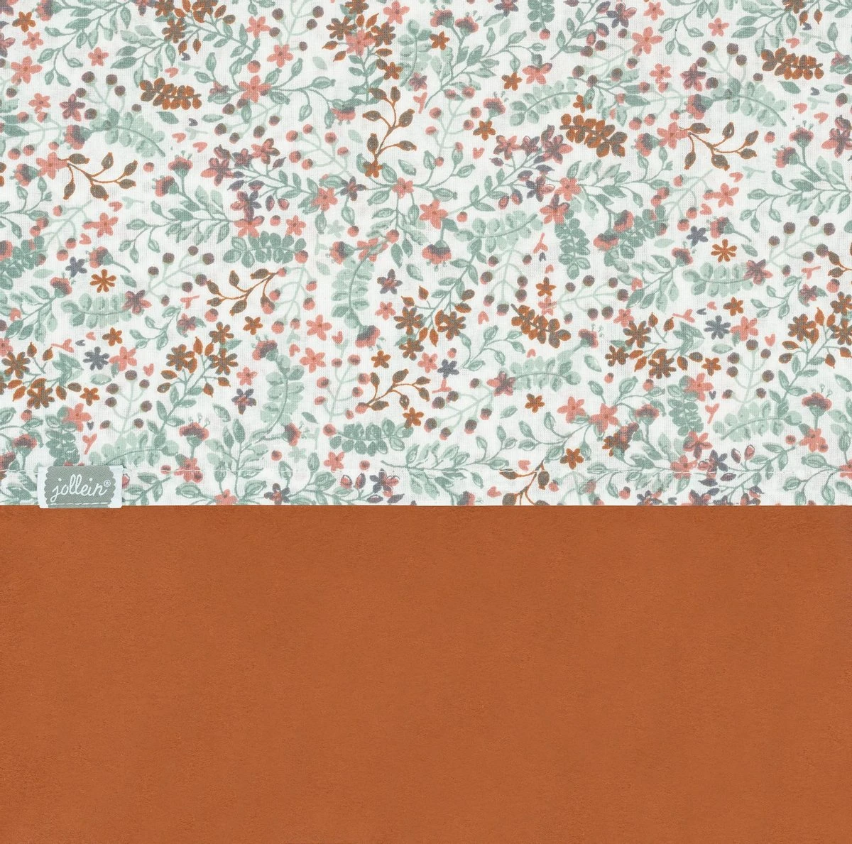Dit laken lijkt wel een romantische bloementuin met de all over bloemenprint in roze, groen en caramel en combineert door deze meerkleurigheid met zoveel effen dekens. Ook combineert dit geweldig met de vintage sluiers en klamboes.