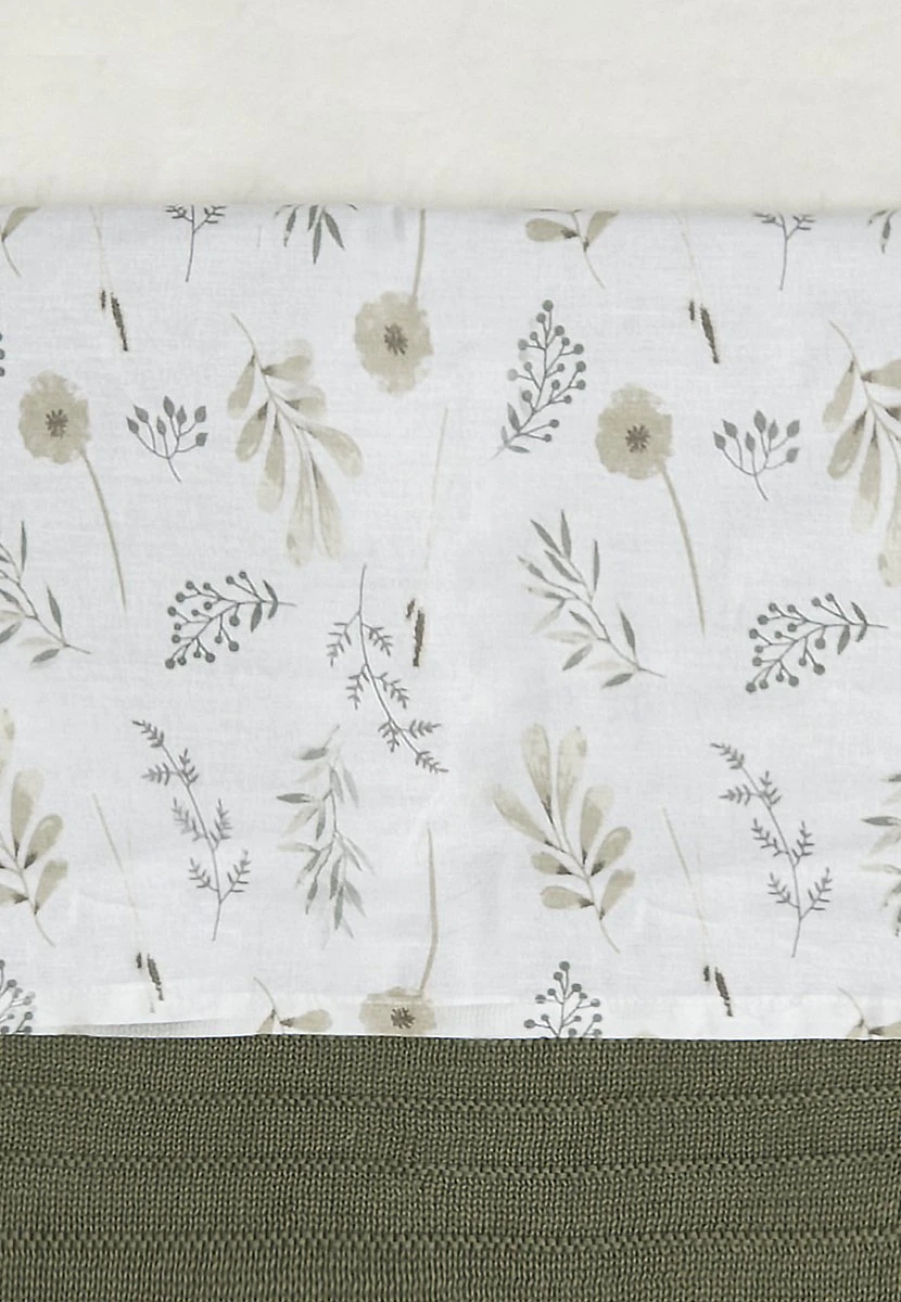 Het witte lakentje heeft een opdruk met droogbloemen in pastelkleuren