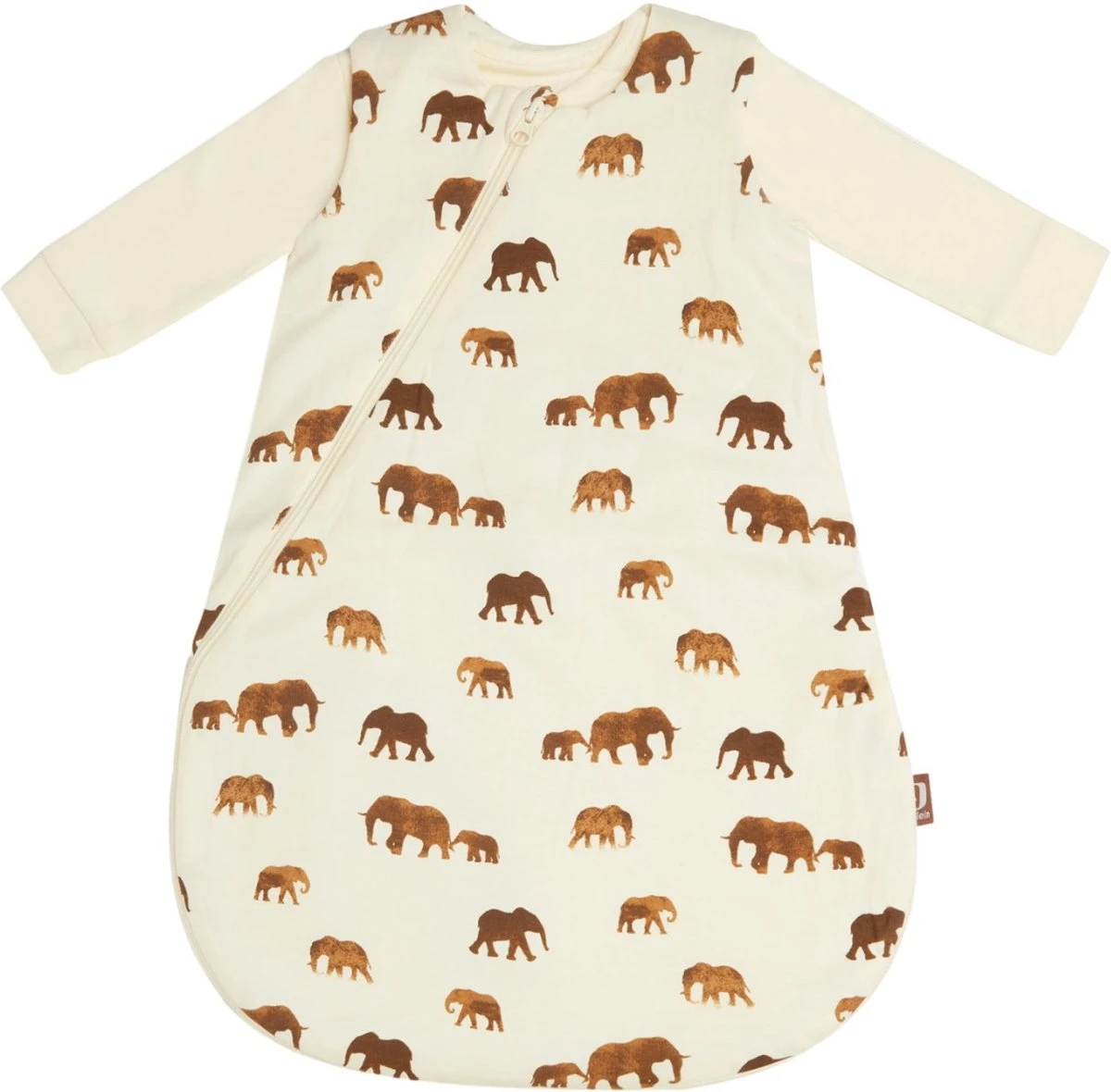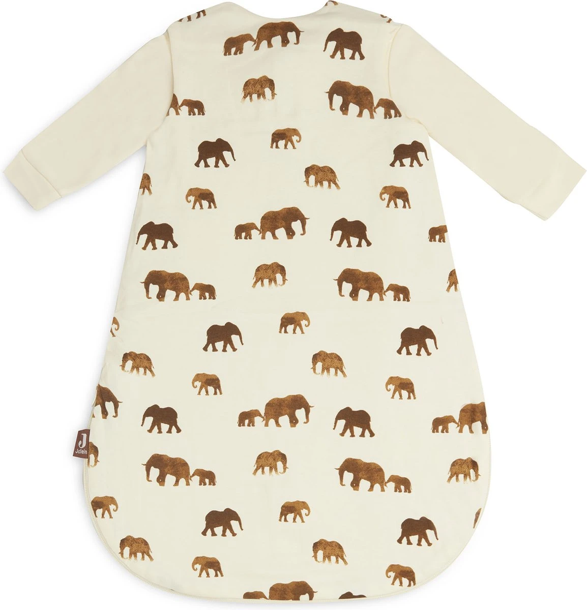 Het slaapzakje heeft een Ivory ondergrond. De olifantjes op de print hebben de kleuren Chestnut en Caramel. Je gebruikt dit leuke slaapzakje voor een perfecte nachtrust. Geschikt voor je baby van 0-3 maanden. Hierna kun je overstappen op een reguliere slaapzak van 70 cm van Jollein.