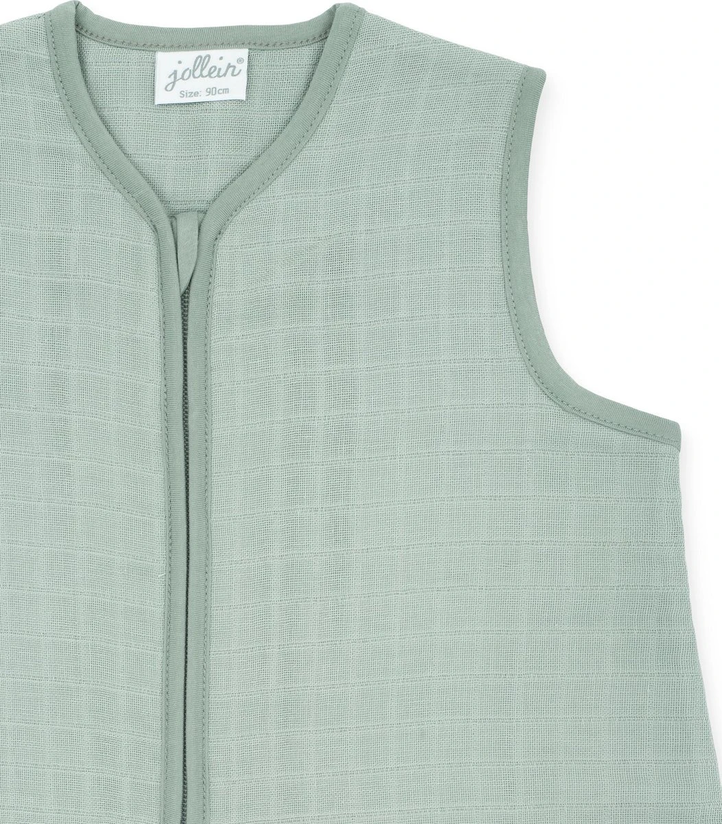 Effen gekleurde slaapzak van luchtig ademend hydrofiel. De prachtige groene kleur van deze slaapzak matcht in elke stijl babykamer. Een fijne basic!