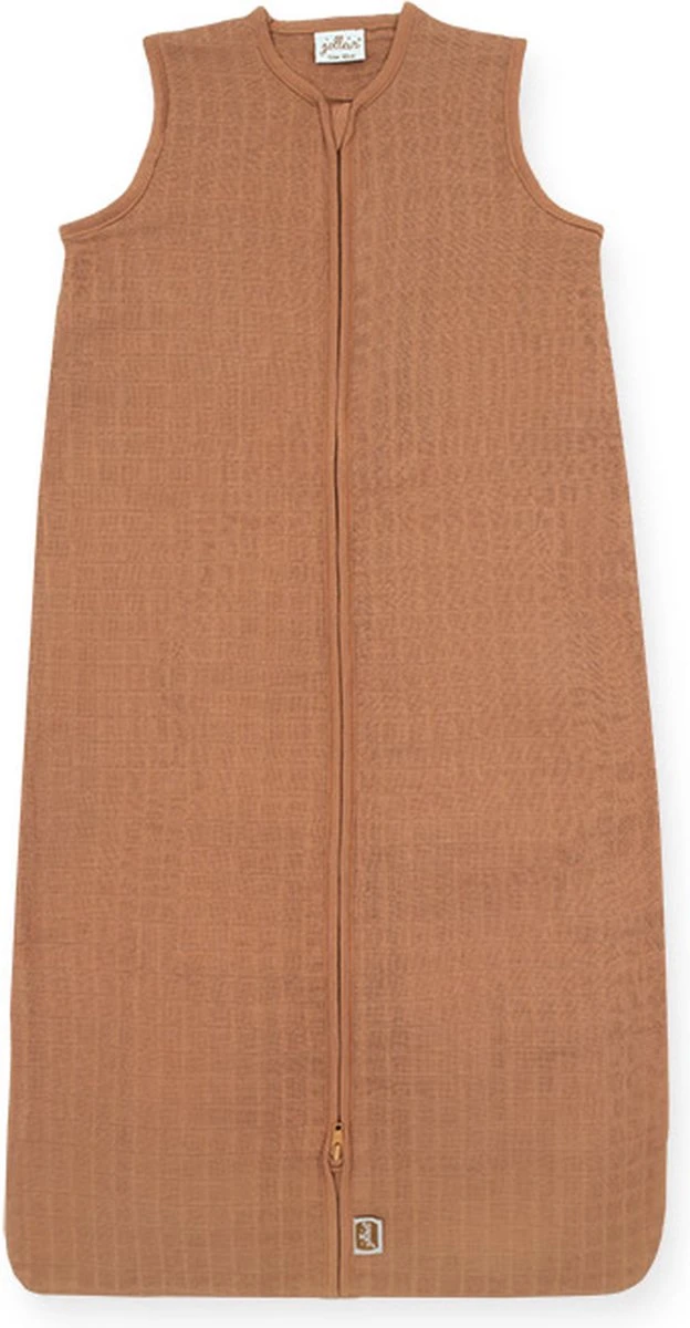 Deze slaapzak is uitgevoerd in effen Caramel