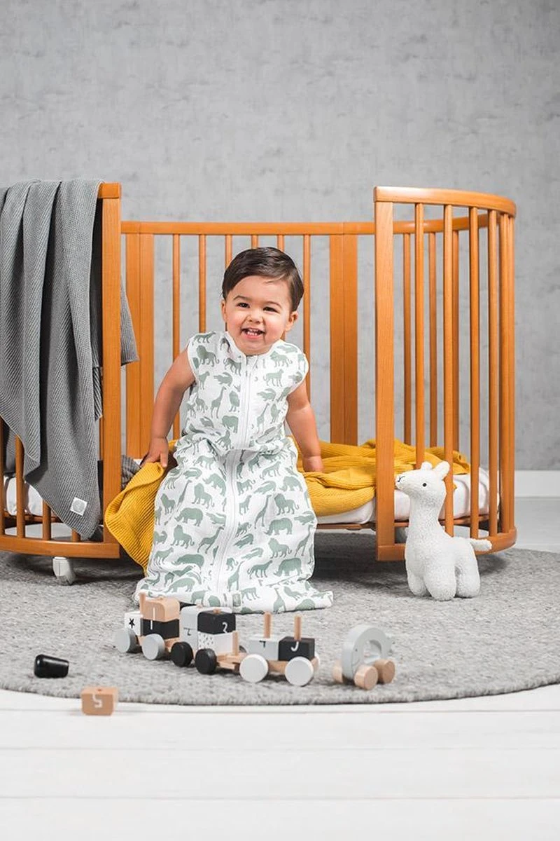 De ideale slaapzak voor jouw baby. De slaapzak heeft een gezellige safari motief, met de leukste dieren. Door de lage TOG waarde is hij perfect voor gebruik in de zomer of gebruik deze hydrofiel slaapzak in de winter in combinatie met een warme deken.