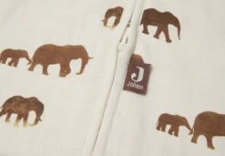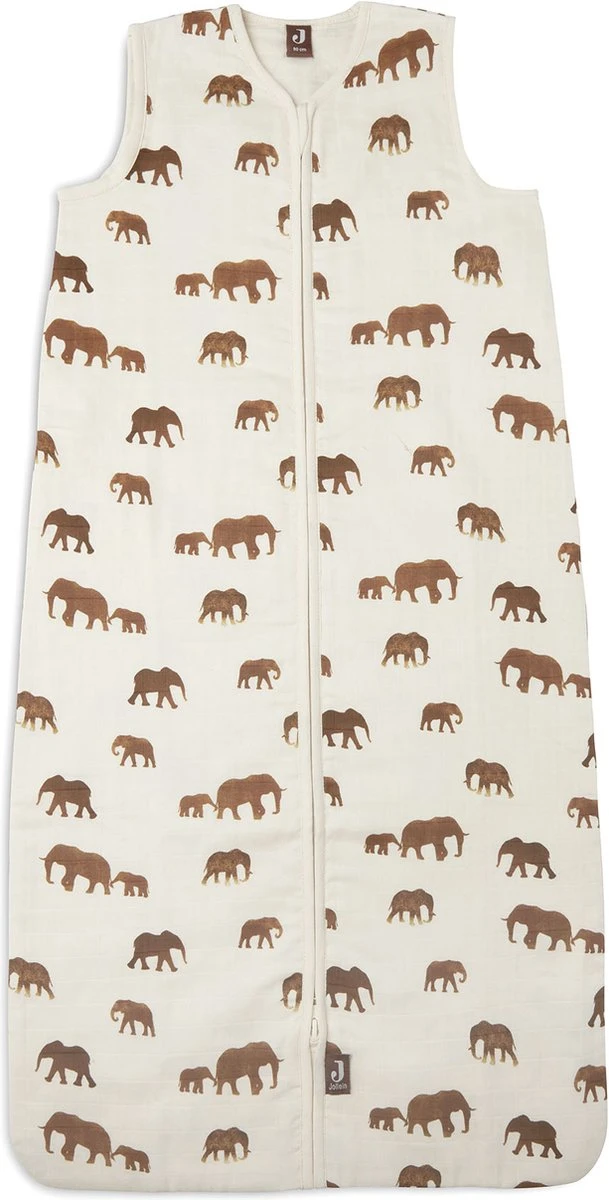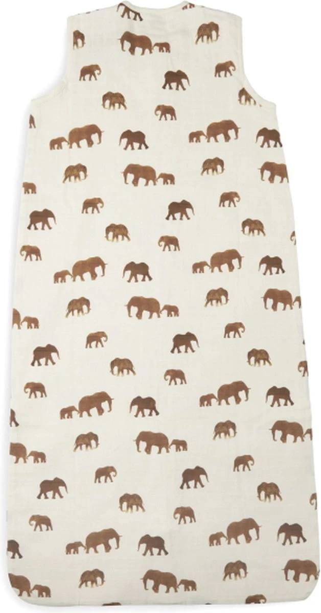 Dit luchtige hydrofiel slaapzakje is heeft een all over printje van caramel kleurige olifantjes en de TOG-waarde is 0.5. Het slaapzakje heeft geen mouwtjes.