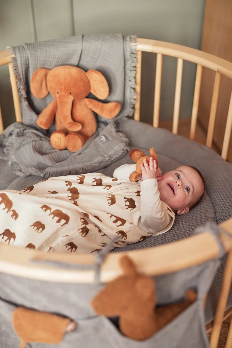 Het hydrofiel Savannah slaapzakje is verkijgbaar in de maten 70, 90 en 110 cm. Dit matcht dus in elk bedje.