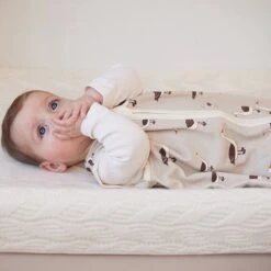 Het jersey Goose slaapzakje is verkijgbaar in nougat en biscuit. Dit matcht dus in elk bedje.