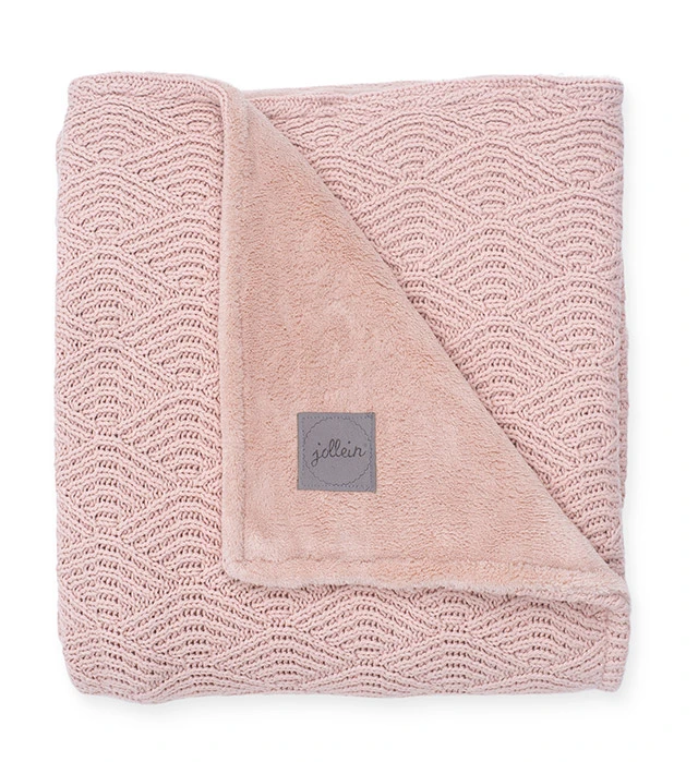“Deken 100 x 150 cm River knit pale pink/coral fleece”