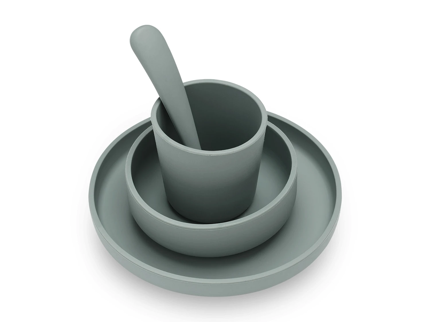 Het gehele kinderserviesset bestaat uit een bord, beker, kommetje en lepel en zijn gemaakt van 100% siliconen. 100% vrij van BPA, PVC, and PHTHALATES.