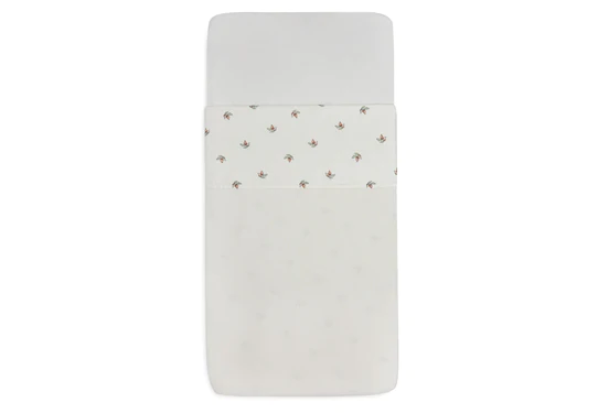 Je kleintje droomt comfortabel onder dit schattige vel met all-over rozenbottelprint! Het vel heeft een prachtige all-over Rozenbottel print. Je kunt dit laken perfect combineren met een deken uit de Basic Knit of Shell Knit collectie. Dit laken is geschikt voor het ledikant, maar ook verkrijgbaar in een maat die perfect is voor de wieg.
