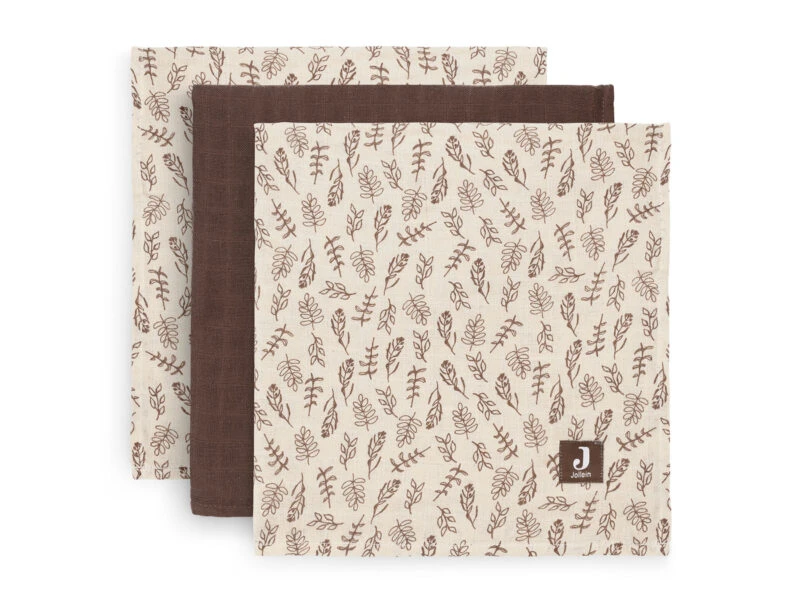 Verkrijgbaar in roze rosewood en bruin chestnut. Er zijn ook hydrofiele doeken in andere prints verkrijgbaar.