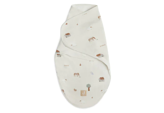 Deze fijne wrapper slaapzak zorgt ervoor dat je je kleine baby goed kan inbakeren. Hij is geschikt voor baby’s van 0-3 maanden. Deze wrapper slaapzak heeft een leuke Farm print en heeft een TOG waarde van 0.5. Het is een fijne oplossing voor als je een onrustige baby hebt. De inbakerzak is makkelijk aan te doen met de stevige en toch zachte klittenband. Aan de onderkant van de wrapper zit een handig ritsje, handig voor het verschonen van een luier. Je ritst de onderzijde open en de rest van de wrapper kan aanblijven. Goed slapen is belangrijk voor de ontwikkeling van je baby, maar dat valt nog niet mee. Zo zijn onverwachte bewegingen van eigen armen en handjes genoeg reden om wakker te worden en het op een huilen te zetten. Deze inbakerdoek is volgens de laatste inzichten ontworpen en ontwikkeld. De armpjes en borst worden lekker stevig ingepakt terwijl de beentjes vrij kunnen blijven bewegen. Ook verkrijgbaar met andere printjes.